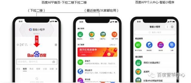 03固定入口:百度APP首页-下拉二楼(包括最近使用/大家都在用)、百度APP个人中心-智能小程序。注:只要用户打开过或使用过的小程序都能在固定入口找到