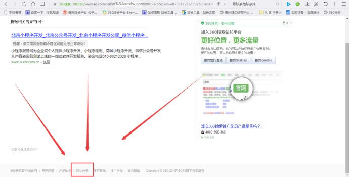 因为缘分(一个偶然的机会),我和360发生了一次美妙的邂逅,在她搜索界面的下方,发现了一个“网站收录”的超链