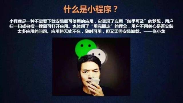 小程序之所以这么火,一方面是因为有微信强大数据及庞大的用户流量支持,另一方面是因为小程序是一种不需要下载安装就可以使用的应用,用户扫一扫或者搜一下就能打开应用,同时满足了用户不想安装APP的原因,小程序实现了“用完就走”的观念,无需下载,随时可用;这些优势对于很多企业来说,避免了推广APP的困难,利用小程序做推广更为便利。