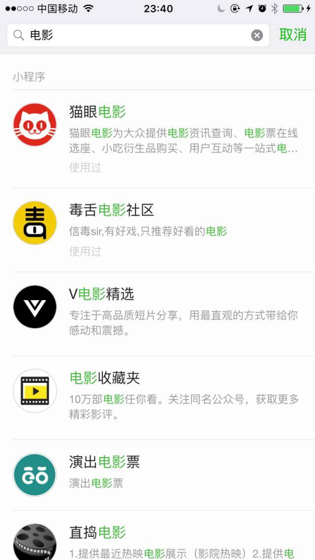 除了使用过这一因素外,当我们搜索某个关键词时,小程序的排列顺序似乎让我们看不懂。其实,微信为了大力推广小程序,对于越早入驻的商家越在排名上给予支持,也就是注册越早越靠前(不同的手机略有不同,绝大部分搜索到的小程序以及排名是一致的)。