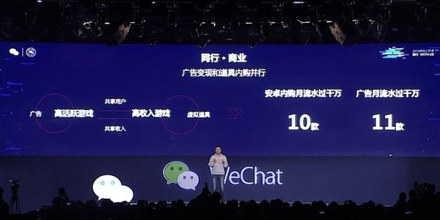 如果只是要赚更多的钱,以微信这样的体量并不难。按照微信公开课上公布的数据,仅小游戏就有 4 亿多活跃用户,Android 的内购道具月流水过千万的小游戏达到 10 款,广告月流水过千万的产品也有 11 款,甚至已经有单月流水过亿的小游戏。